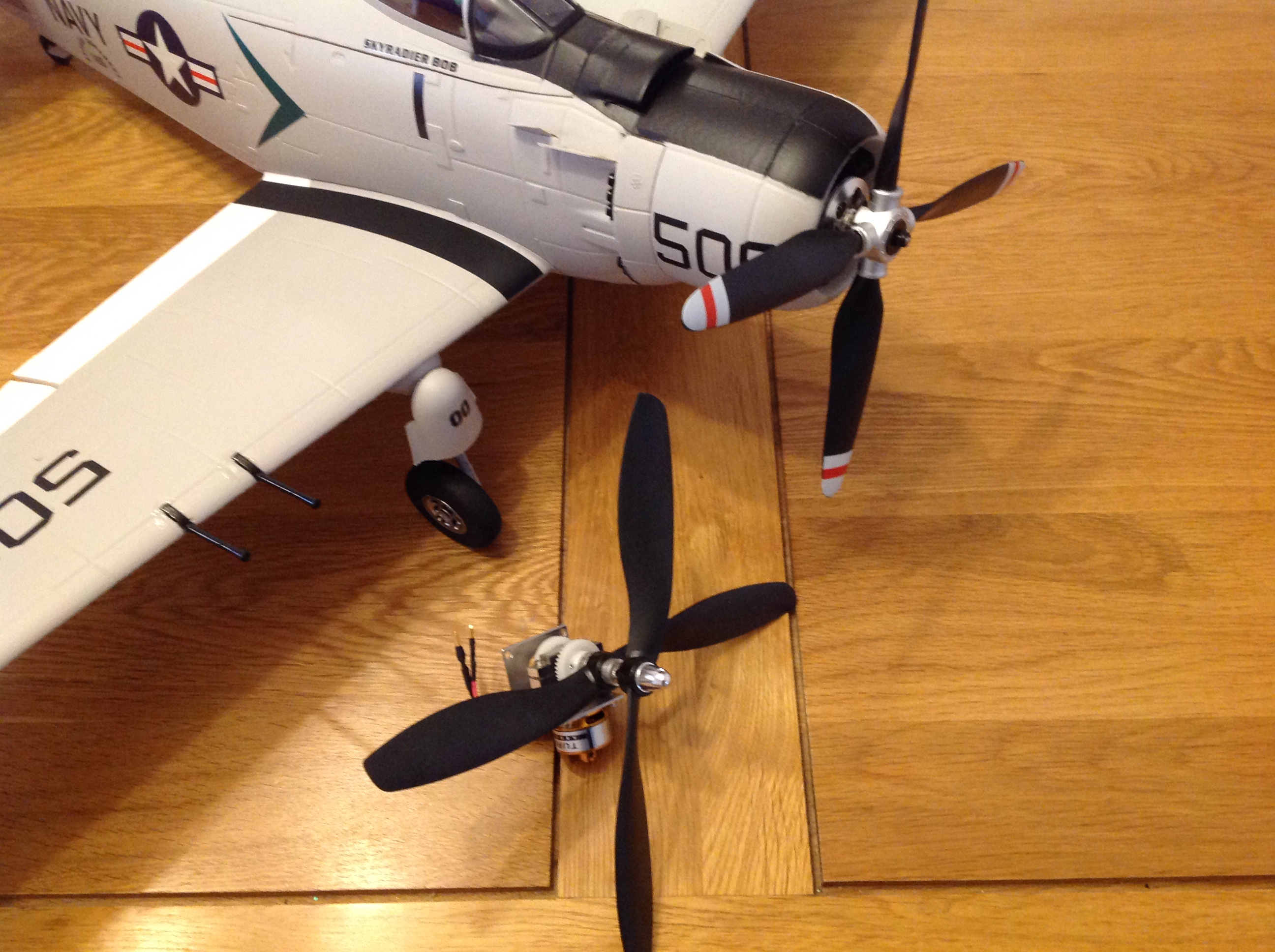 At the present time I am looking for a suitable model for Mert’s motor likely candidates are the Hobbyking A 1 Skyraider 31.5 inch wing span and the Hitec F4U Corsair 30 inch wing span, photo of Mert’s motor below.