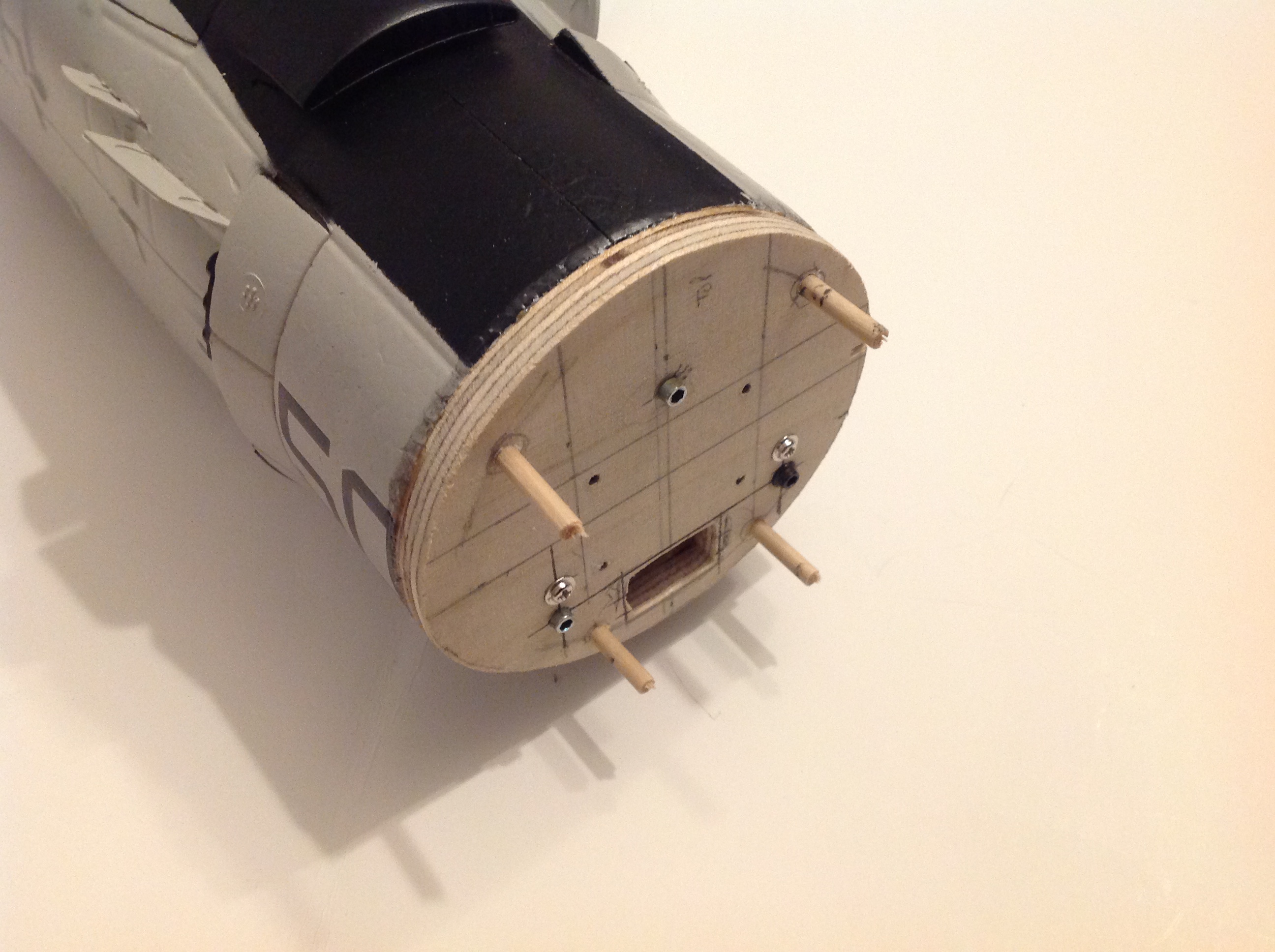 Front of model cut off in line with front bulkhead new 6mm ply bulkhead made and fitted to with screws and dowels.