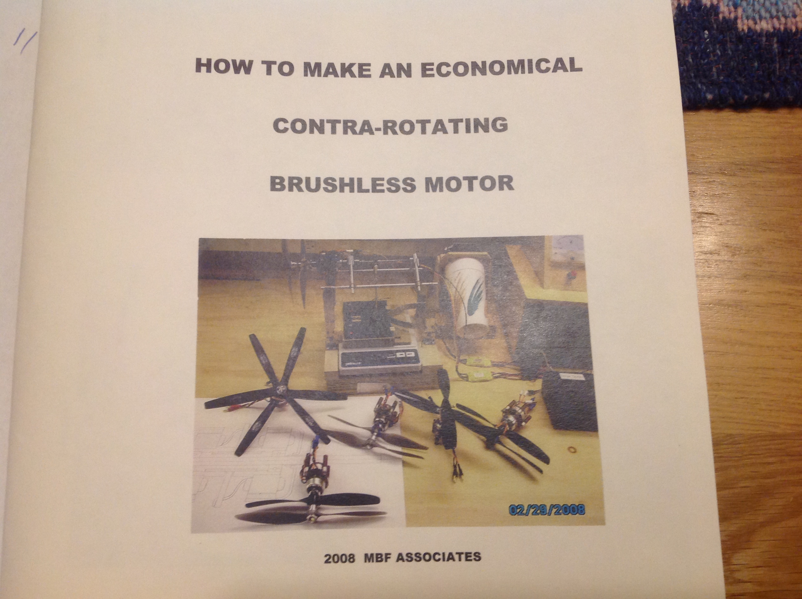 Mert’s first venture came with using Mubachi motors as they were the in thing for electric airplanes, the biggest problem he found was getting reverse rotation propellers at this time, a German company was selling a very nice propeller but not available in reverse rotation, also at about this time Brushless motors were becoming readily available from China making them easier to purchase instead of winding his own, the motors he purchased were able to turn larger propellers in both rotations but the completed assembly was larger than he expected, construction also needed access to a lathe and milling machine for certain parts, details are shown in his book “HOW TO MAKE AN ECONOMICAL CONTRA-ROTATING BRUSHLESS MOTOR” dated 2008, he continued to look for smaller brushless motors to suit his requirements.