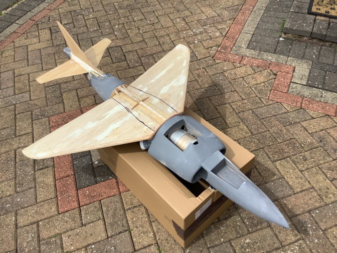 I have been looking at making this aircraft for a few years now, during lock down I decided to move this project forward doing research and looking at drawings of the jet assembly, I have now narrowed this design down to two options the first with four 50mm EDF fans or using a single 90mm fan rated at 2000 watts and running on a six cell Lipo, a mock-up of the jet assembly was made to prove the variability of the 90mm assembly this proved to work very well so work proceed on motor tests and the installation of the jet nozzles and control systems once this also worked I decided to move forward with the construction of the complete model photos show the various stages of construction and any details, the model is of balsa and lite ply construction and then covered in light weight glass fibre with resin.