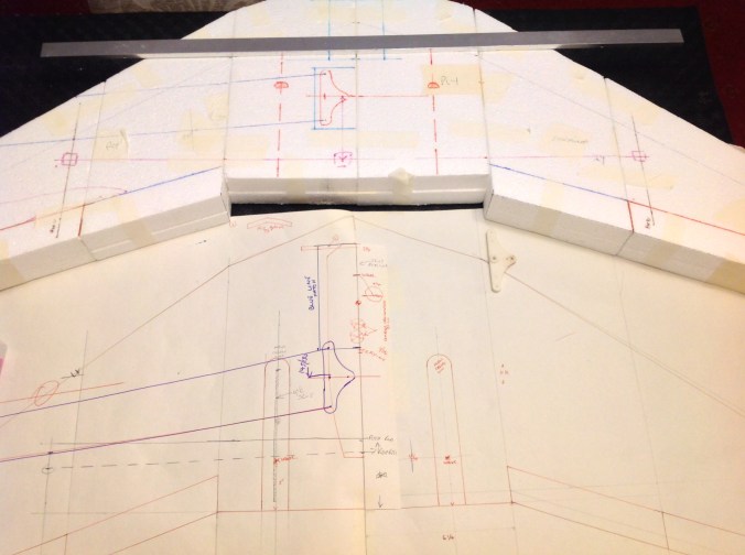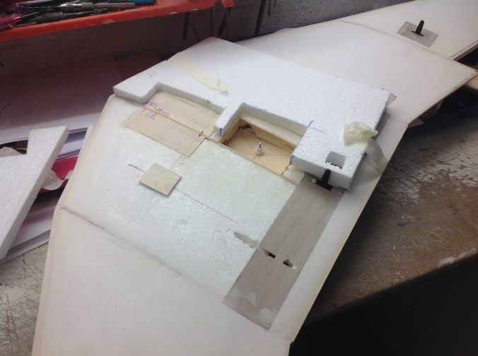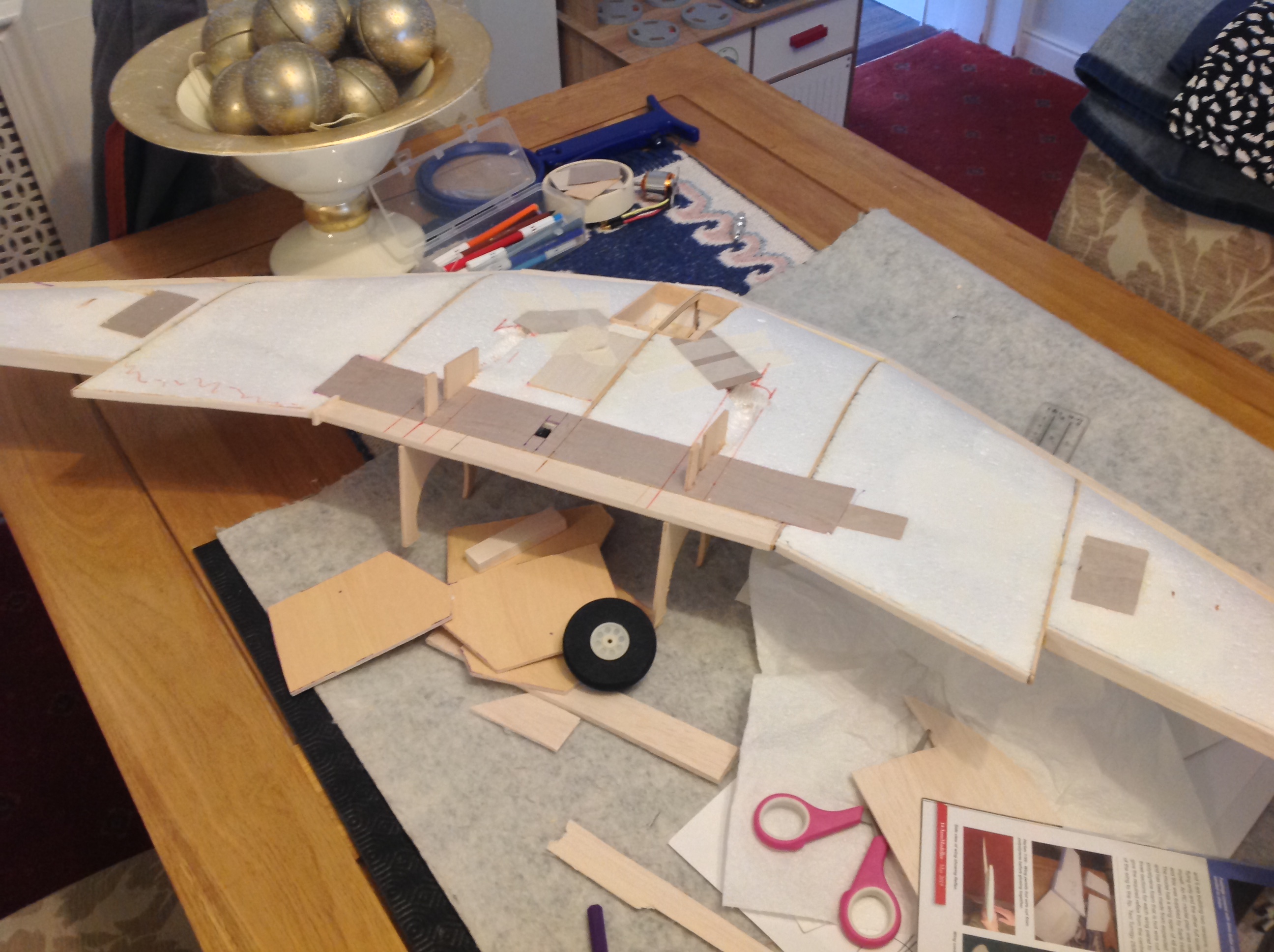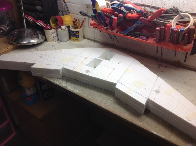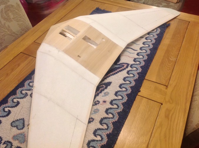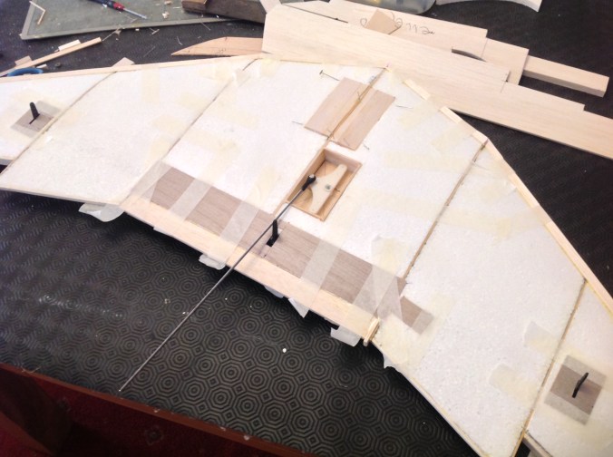 Wing ready for the centre section to be covered in Obechi veneer and then brown paper.