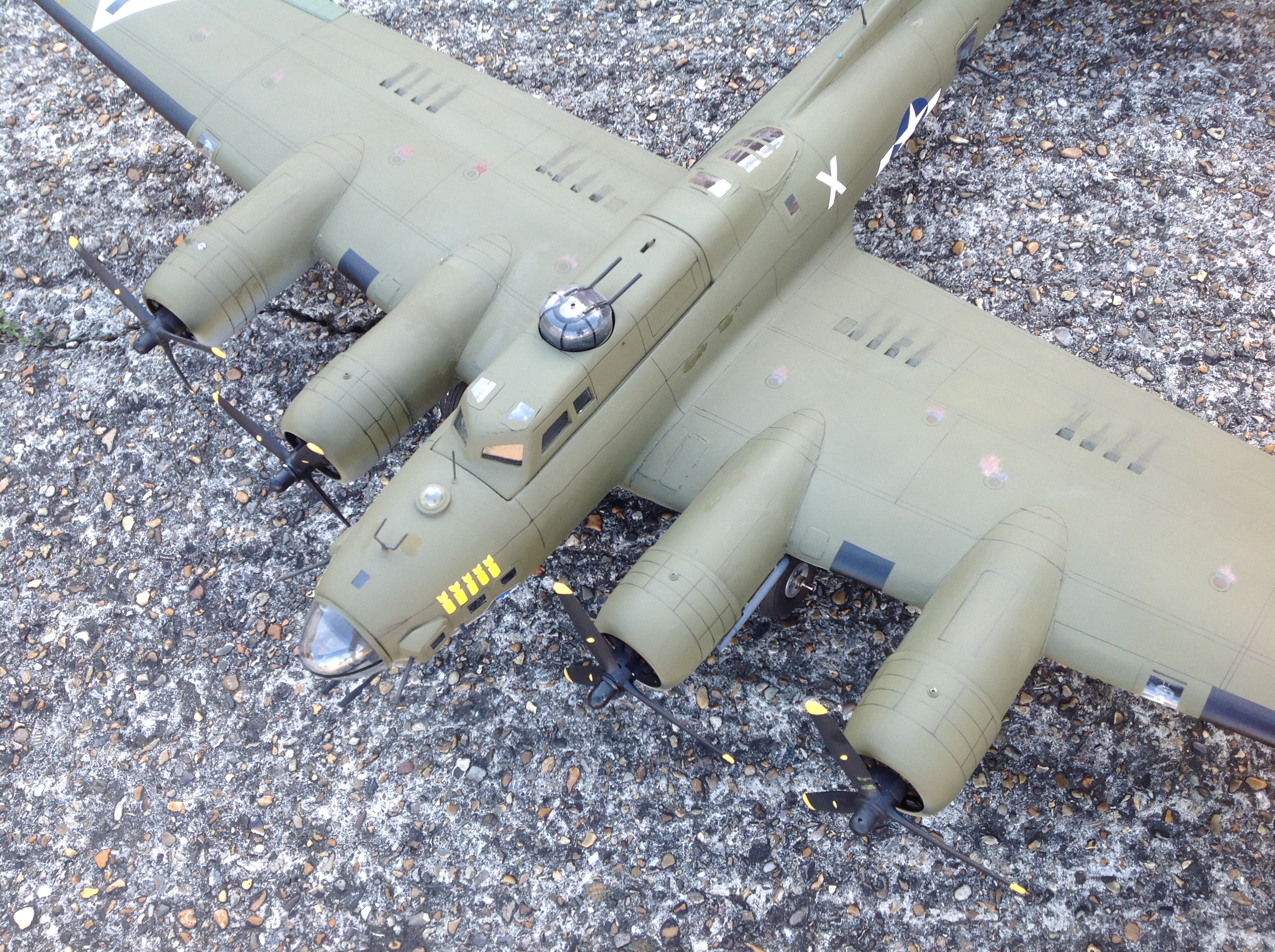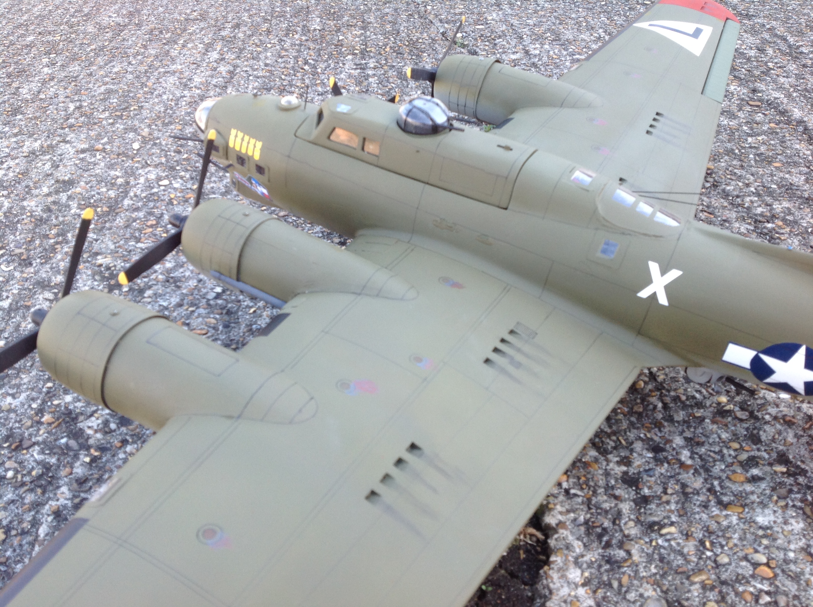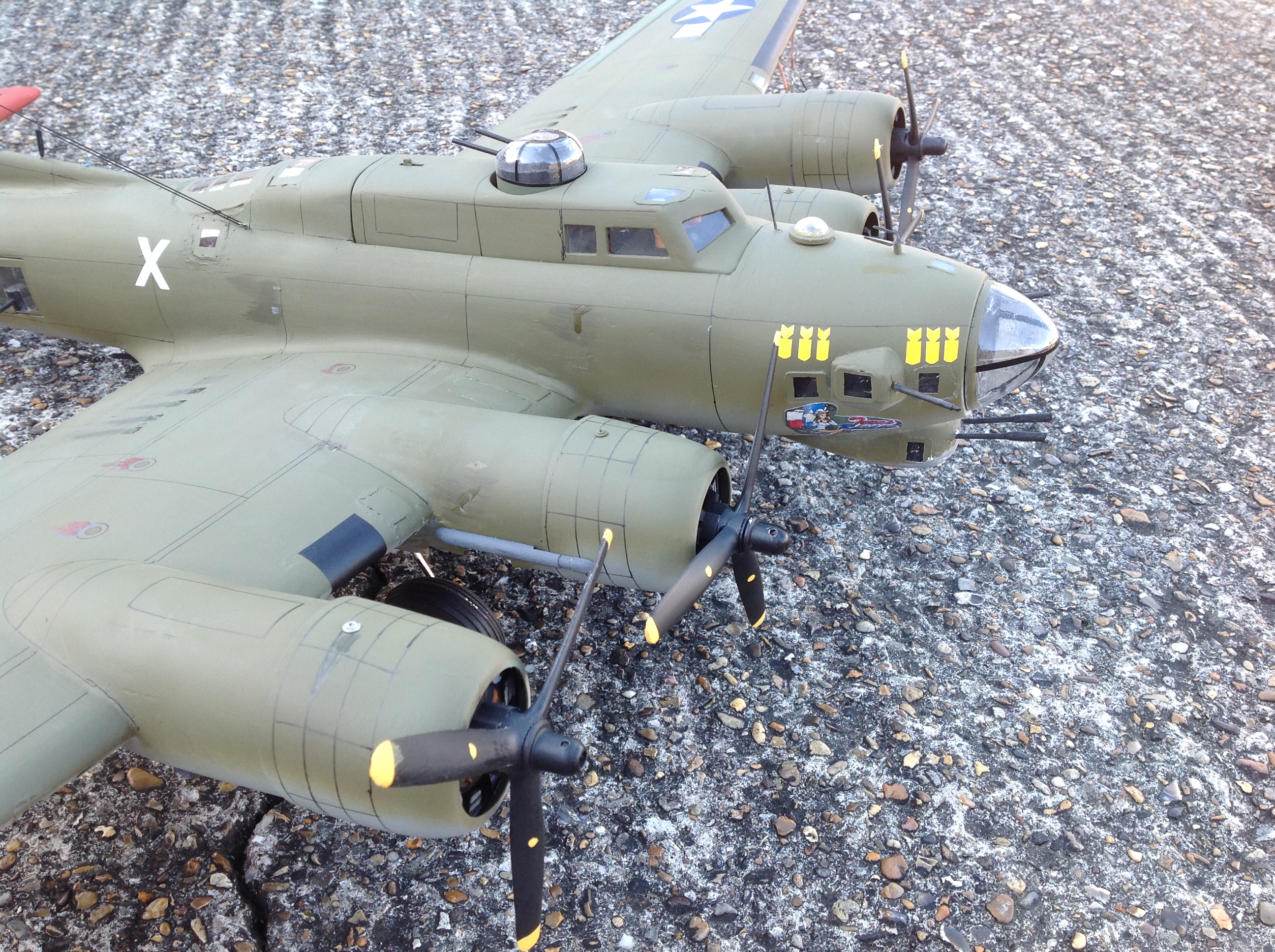 Boeing B17 this model was built over the winter of 2014/15 for the scale meeting at Old Warden in the summer, unfortunately I could not fly it on the Sunday because the weather was so bad, it was flown at the British Nats and came second. I am now in the process of improving the scale appearance, see attached photos. The model is fitted with bomb doors and drops four bombs, both upper and lower turrets revolve with machine gun fire, full retracts are fitted included the tail unit it also has a sound system for the motors. This has been quite a difficult model to build one of the main problems has been fitting all the electronic parts in the model even though it is 55inch wing span, you still run out of room.