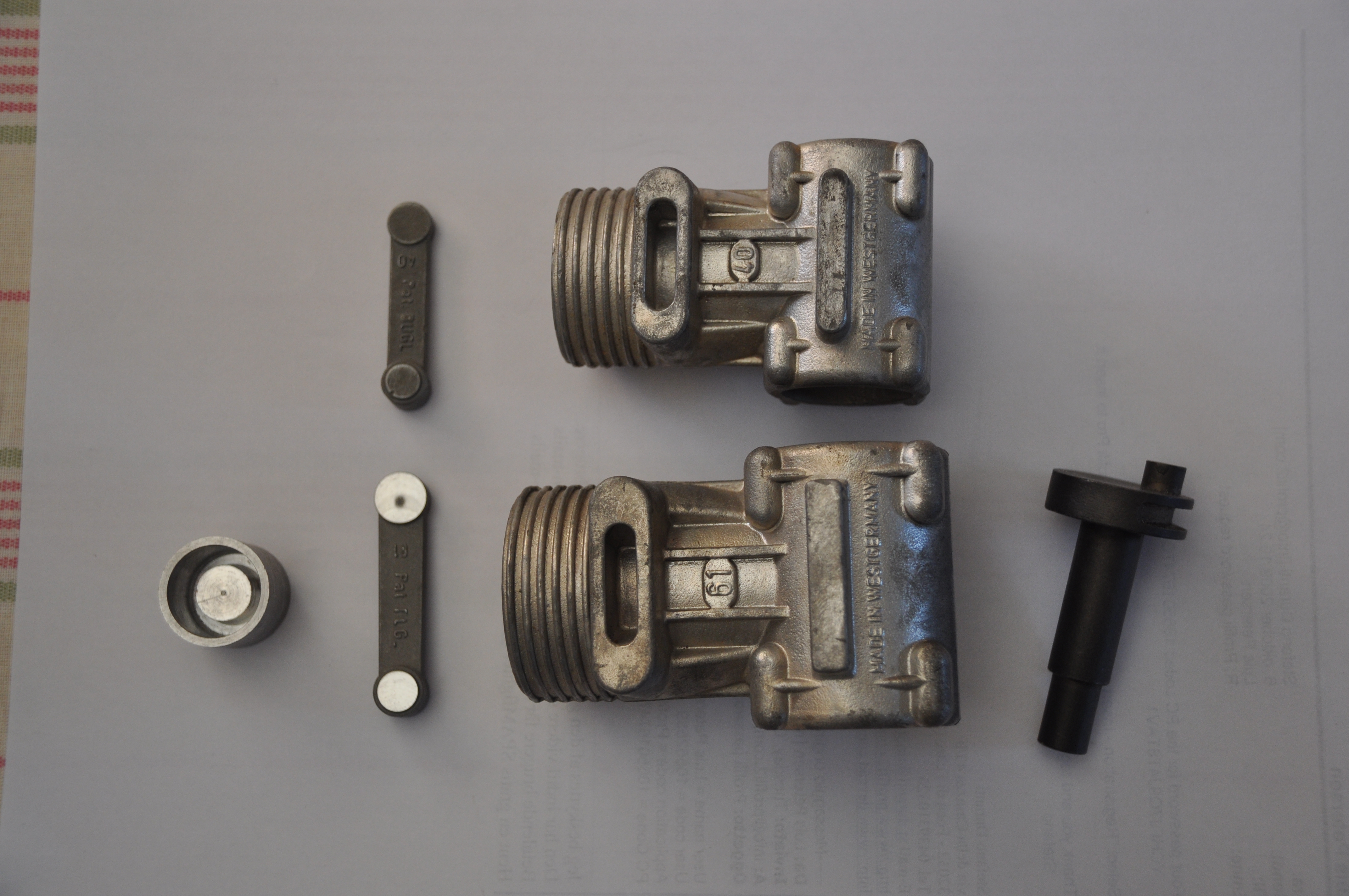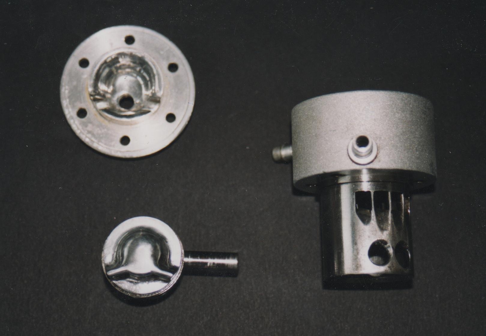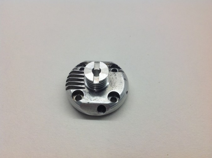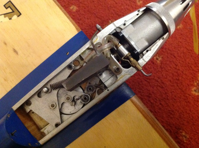 Retract model. Note the large diameter comp-screw this fitted into the contra piston the idea being to help cool the top end, this did improve the speed varying between 0.2 up to 0.4 seconds for ten laps before the advent of the push pull Head design.
