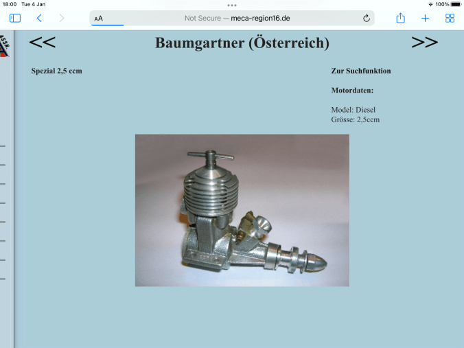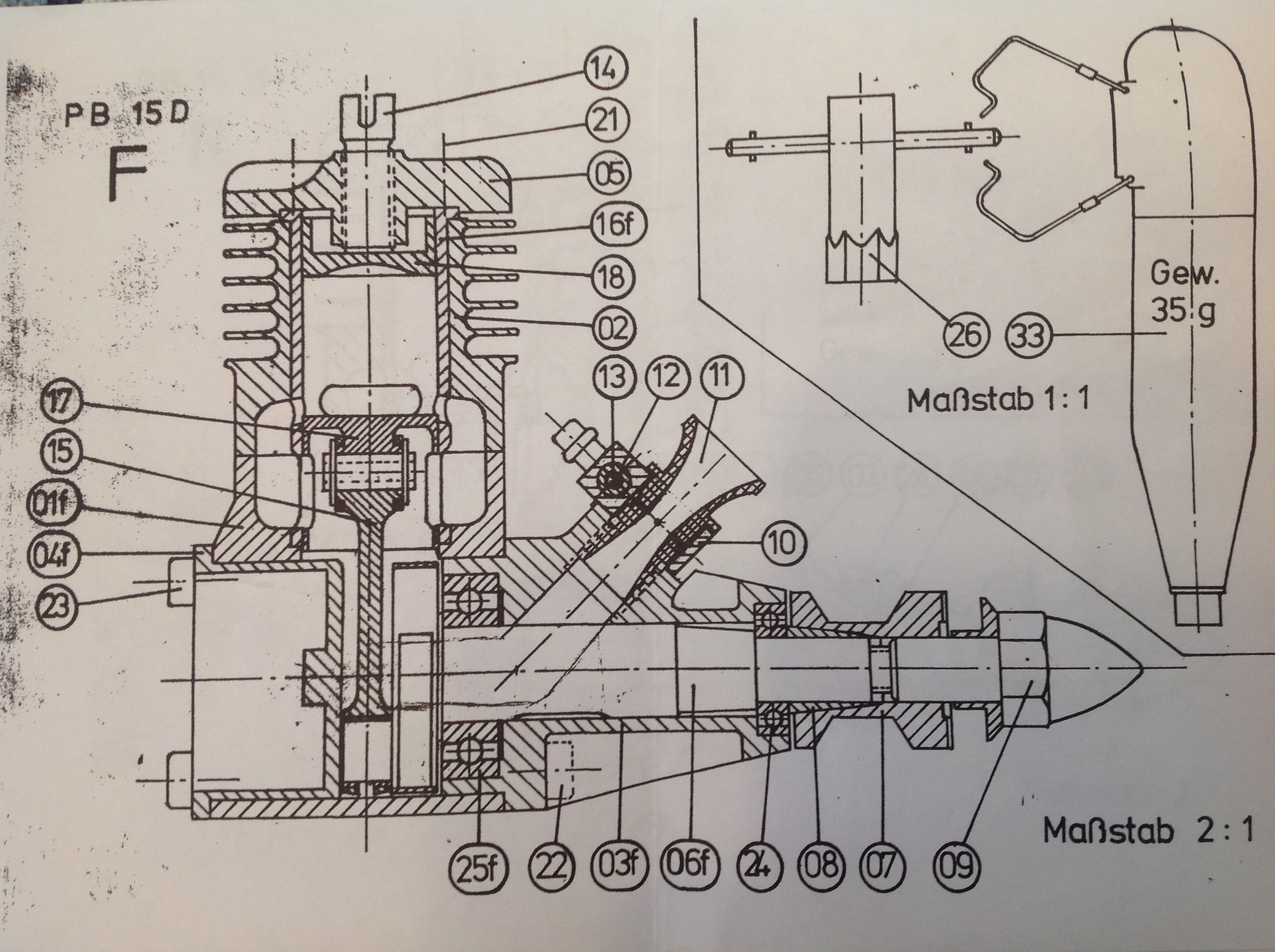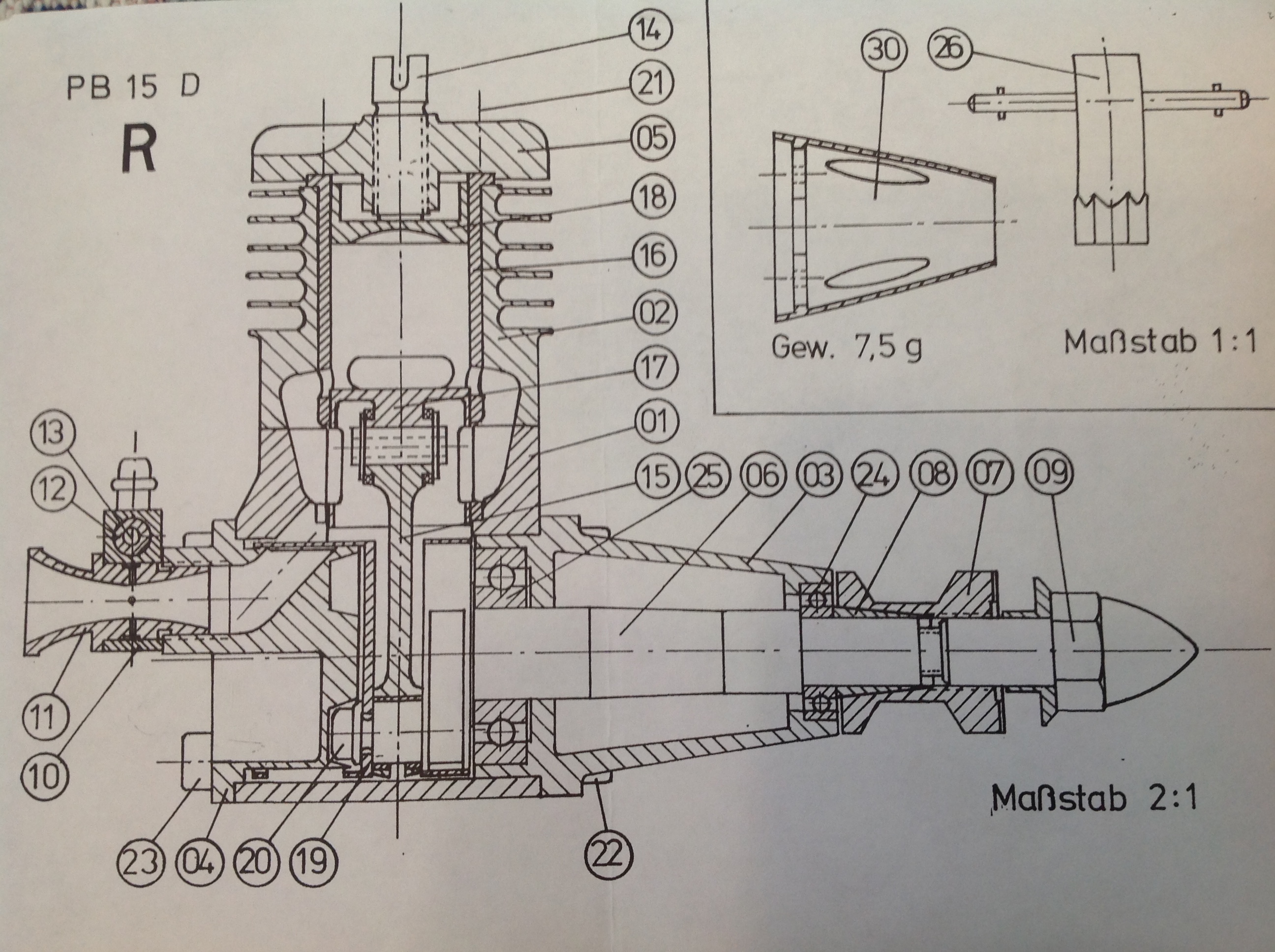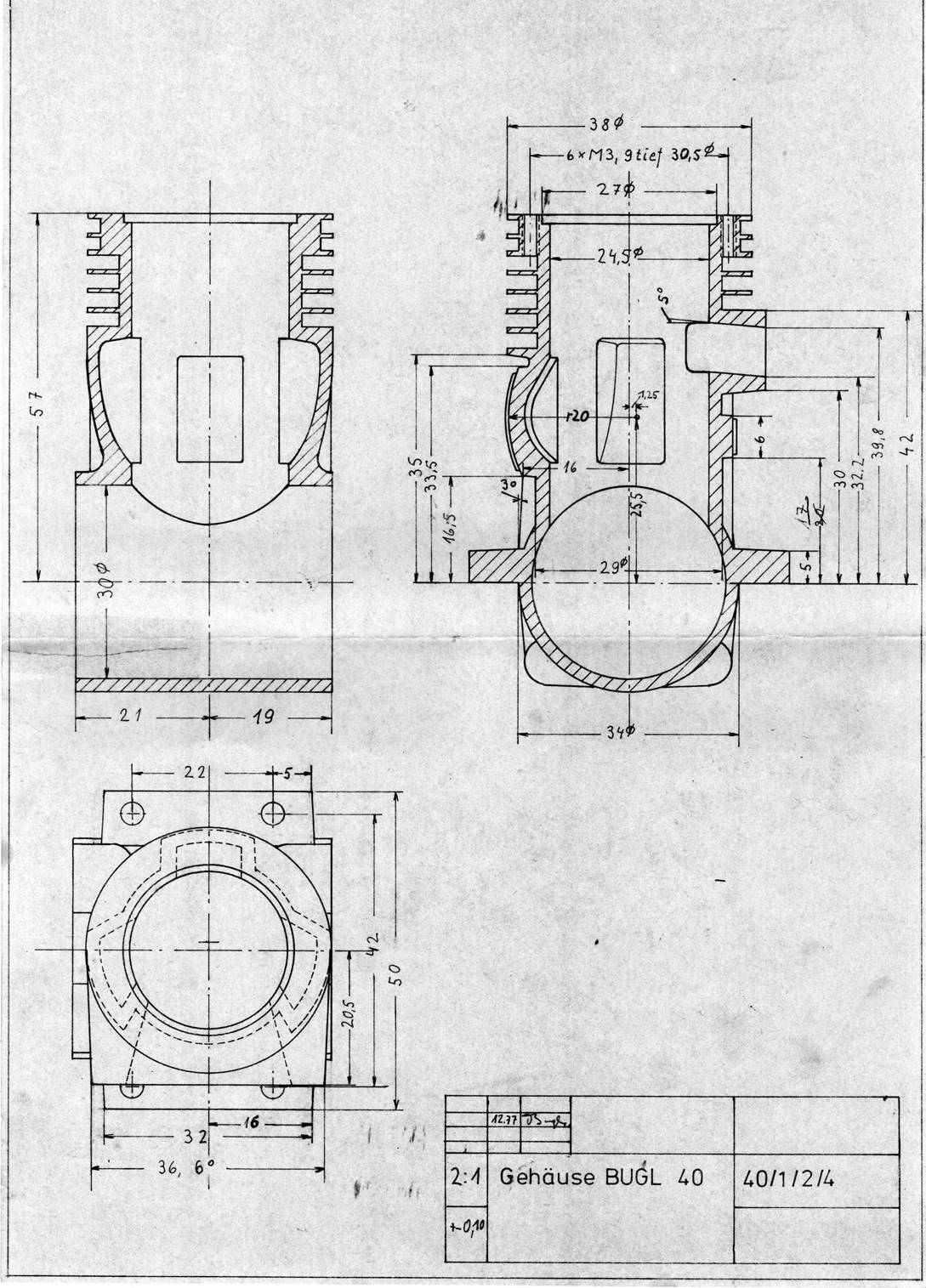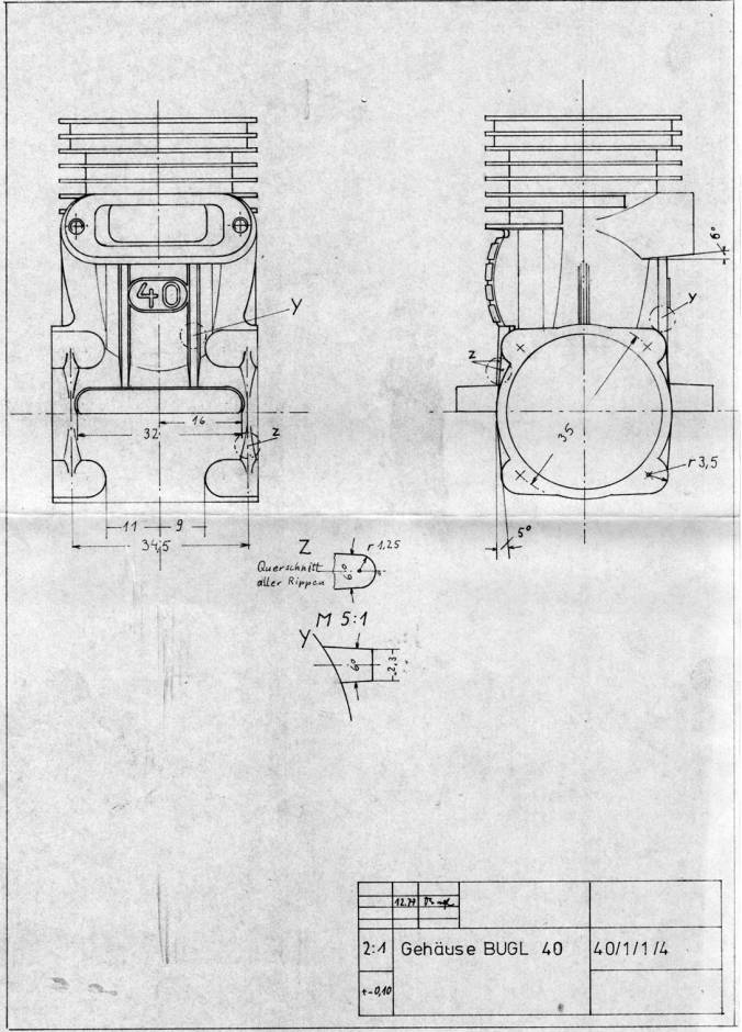 January 2022. Been doing some more research on original Bugl motors found this web site with a index of Bugl motors see http://www.meca-region16.de look under Motoren index worth a look, also found this motor made by Baumgartner who flew team race for many years and was a were close friend on Paul’s see photo, this looks like it could be part of the jig saw from the original motor to the HP 15 design only an idea anyway. Ronnie