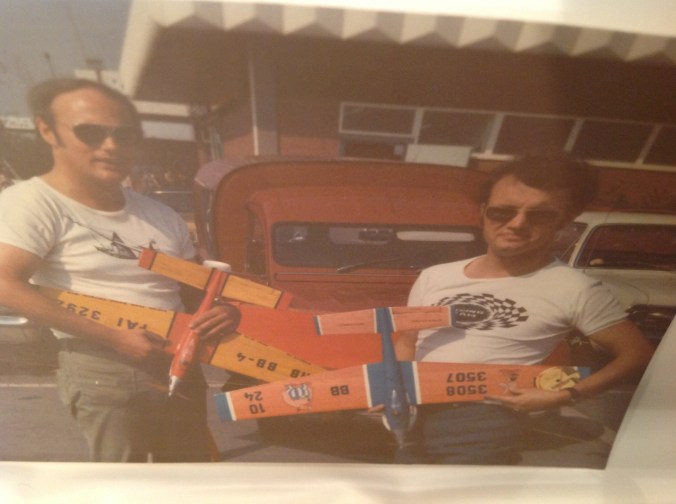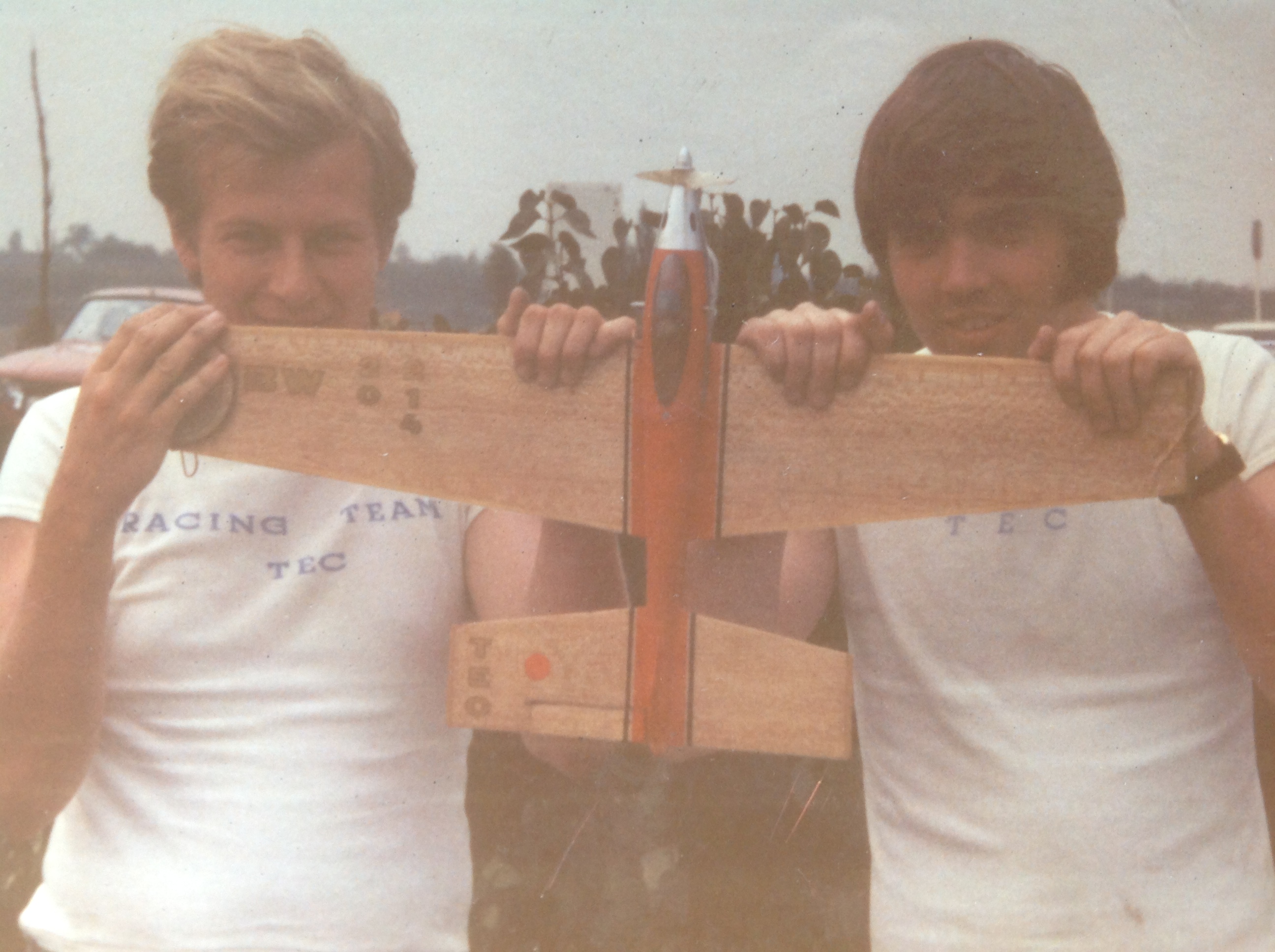 To start with just some background, I started flying Goodyear with my brother Micky and progressed very quickly into the Team Race world in the 1970’s using ETA 15’s and MVVS TRS motors supplied by Jurgen Bartels. We first ordered our two Bugl motors as a result from Paul’s advert in the Aero Modeller, later on in the year one motor and cut-out turned up in the post, I built two balsa models based on a Russian design covered in coloured tissue paper and then entered the team trials for the next World Champs to be held in Czechoslovakia 1974, we were successful and here the story begins.