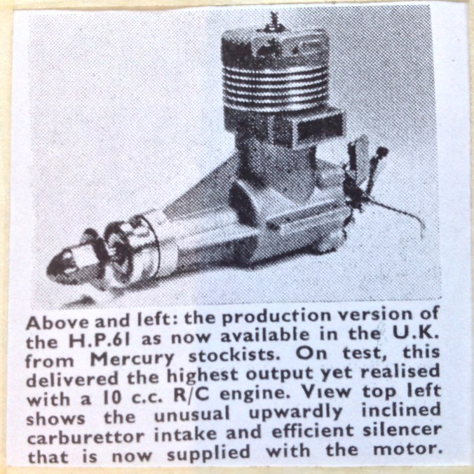 Feb 2021. Just received the following information from Christian Hirsch in Austria with the following photos, the first photo shows a team race model and motor purchased from Paul in 1960 and photos of two marine motors made by Paul the first is the HP 15 and the second a HP Prototype for class FSR 1967.