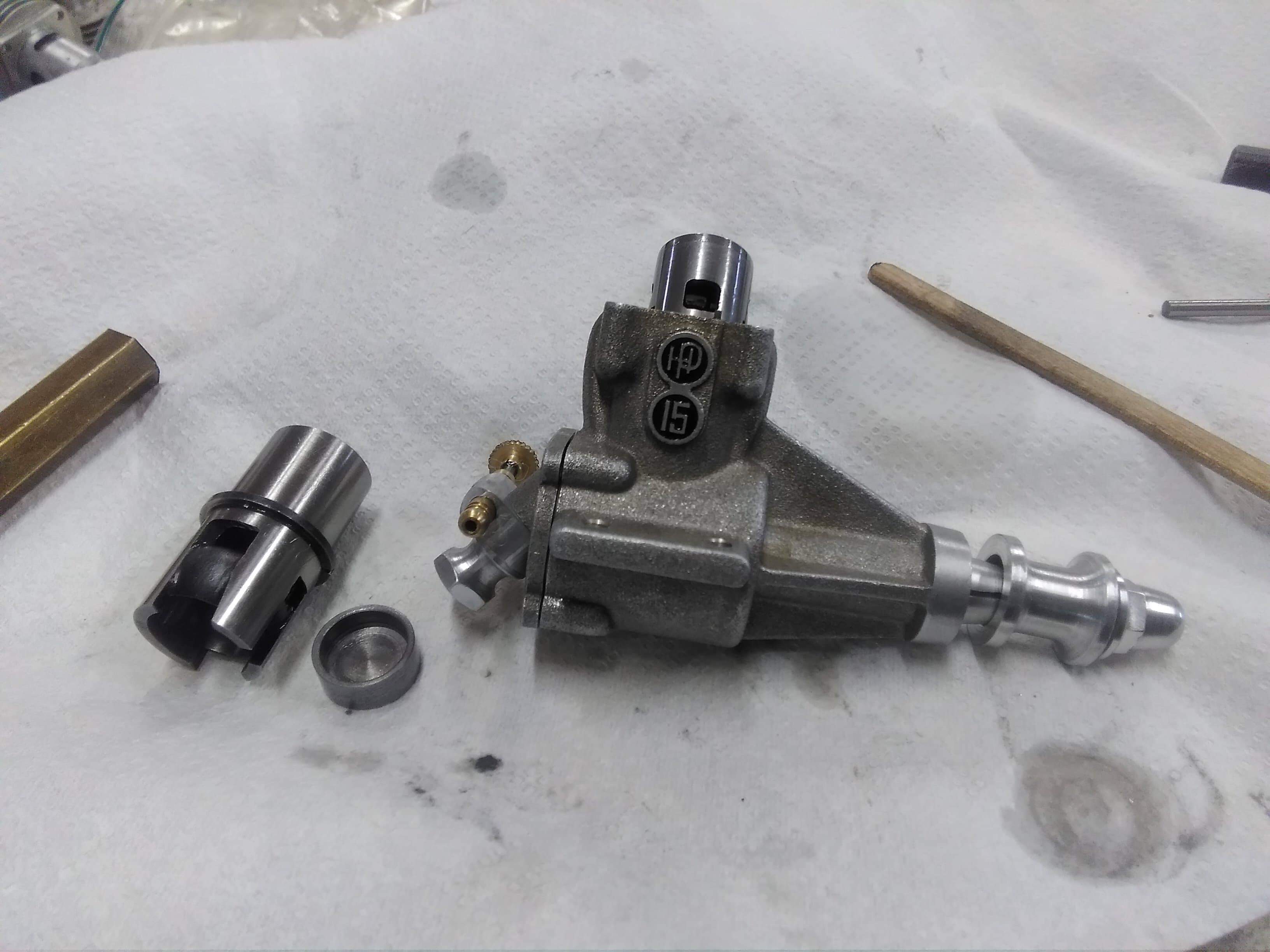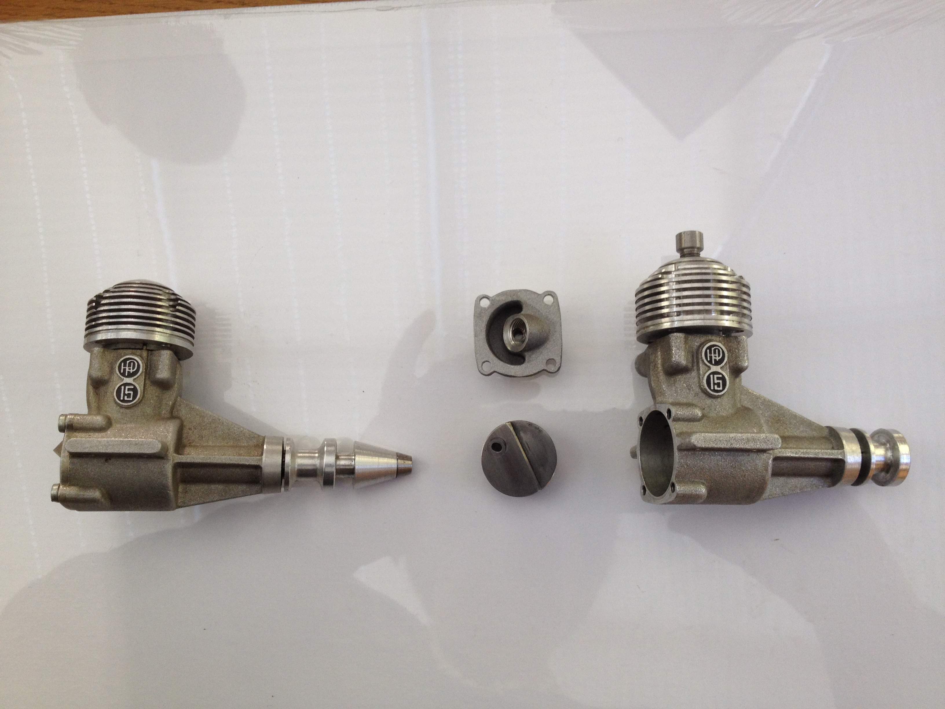 December 2021 update. Paul Cameron sent me the attached photos of his HP15 he got from Bader/Karl at the 1972 Nats I believe, this motor has been modified which includes the different fins on the head which look like the glow motor type see photo I have sent Paul a copy of the drawings for the diesel head which he has now made see photo.