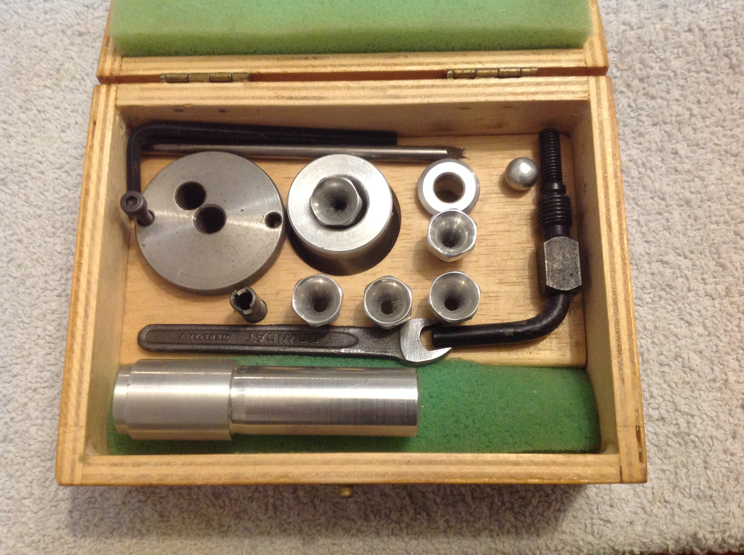 Bugl Tool Kit. Comprises of Drum and prop driver tools, ball race bearing fitting tools, set of carburettors from 2.9 to 3.4 mm and the pin and cir-clip remover for the little end.