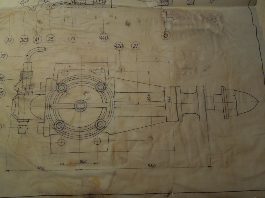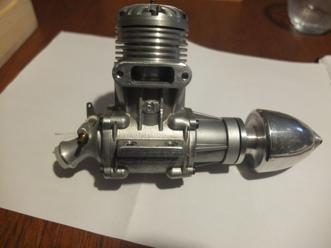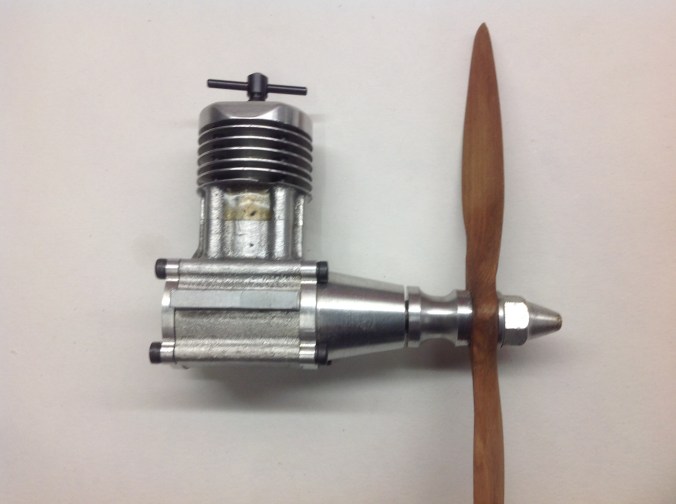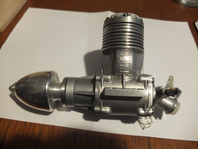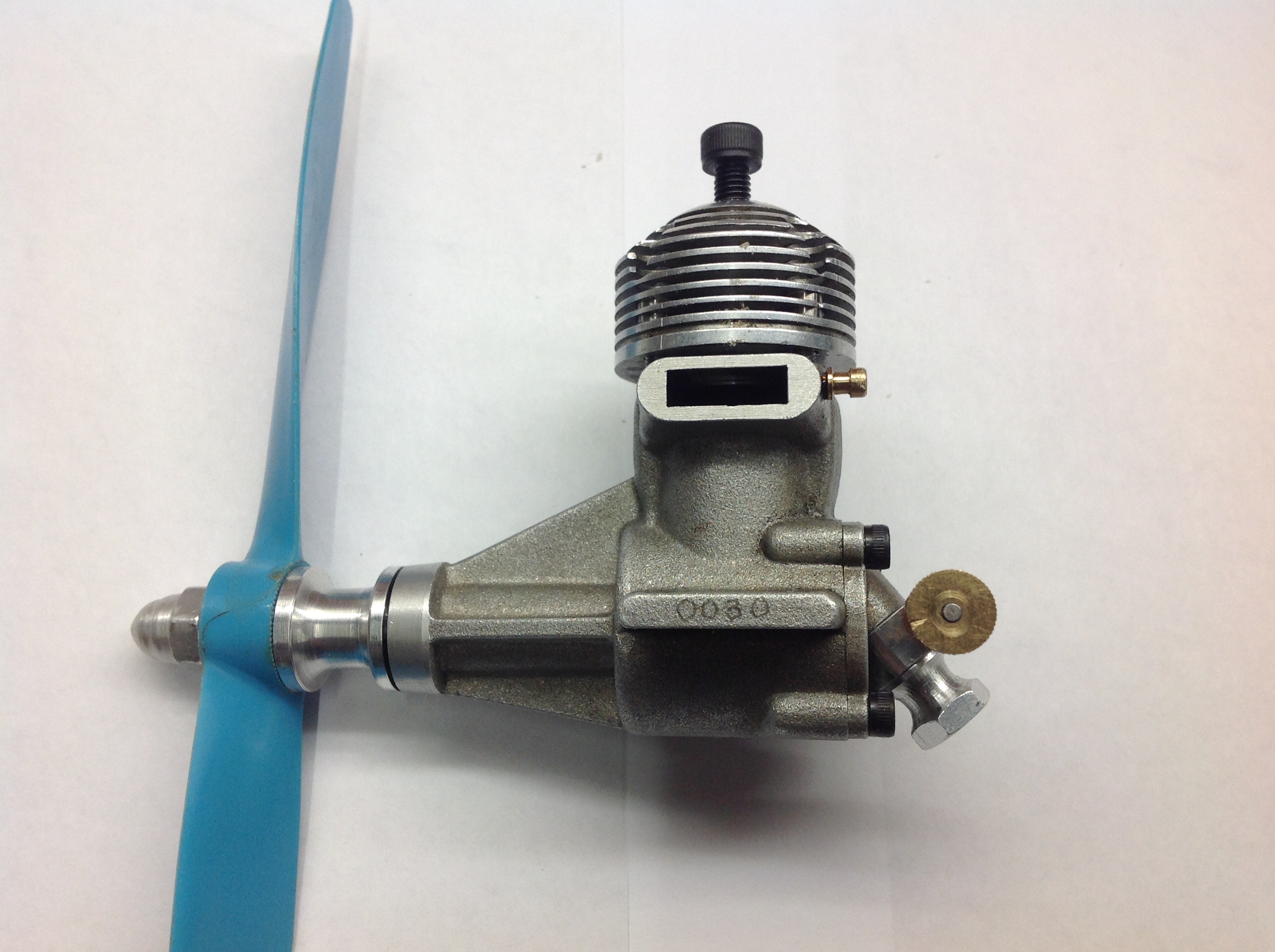 Test running the above engine after 50 odd years, new piston pin and liner honed, new prop driver and nut plus carburettor assembly. This motor has a serial number of 0030 and is fitted with a Titanium con-rod which Paul told me these were made for the Worid Champs held at Helsinki.