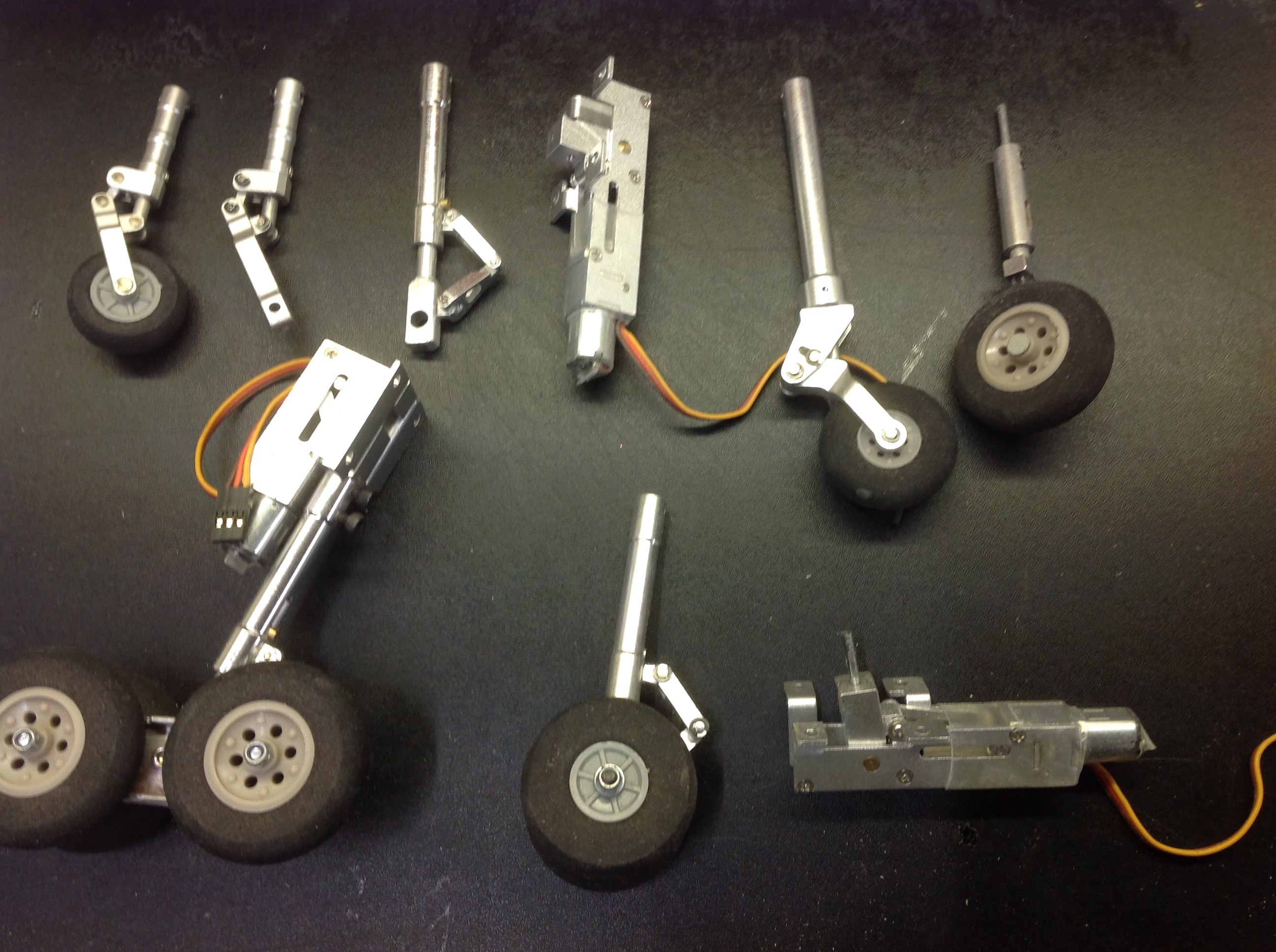 E-Flite These seem to be OK, however the wire leg can bend back quite easily causing clearance problems in the wheel well, the grub screws holding the leg in place need to be replaced with good high quality steel types, longer if available to allow greater depth for the Allen key, also please use good quality keys or you could have problems later on, I have used these on my Me 262 and they now work very well, the only other factor is they are not very scale looking.